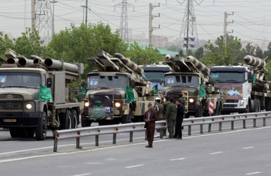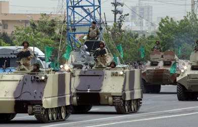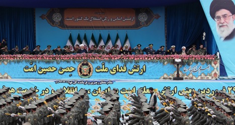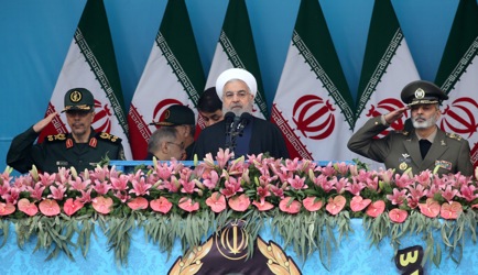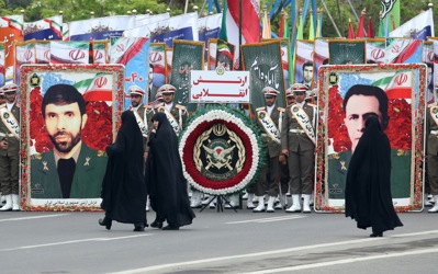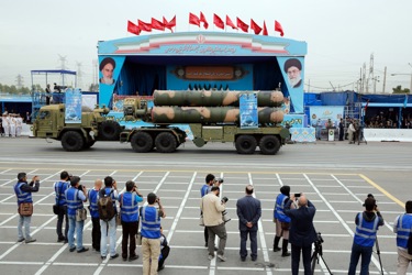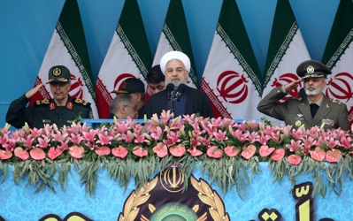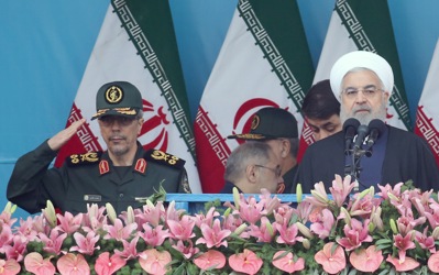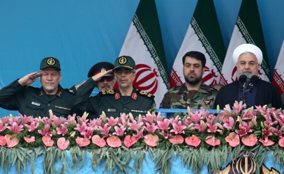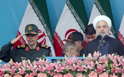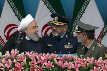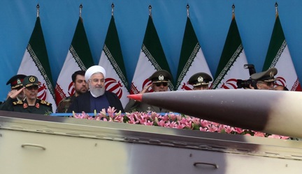 epa07513400 Iranian army trucks carrying missiles take part in celebrations marking Army Day in the capital Tehran, called on countries across the Middle East to unite against the United States -- amid rising tensions between the two countries following the US classification of the Iranian Revolutionary Guards as a terrorist organization. EPA-EFE/ABEDIN TAHERKENAREH